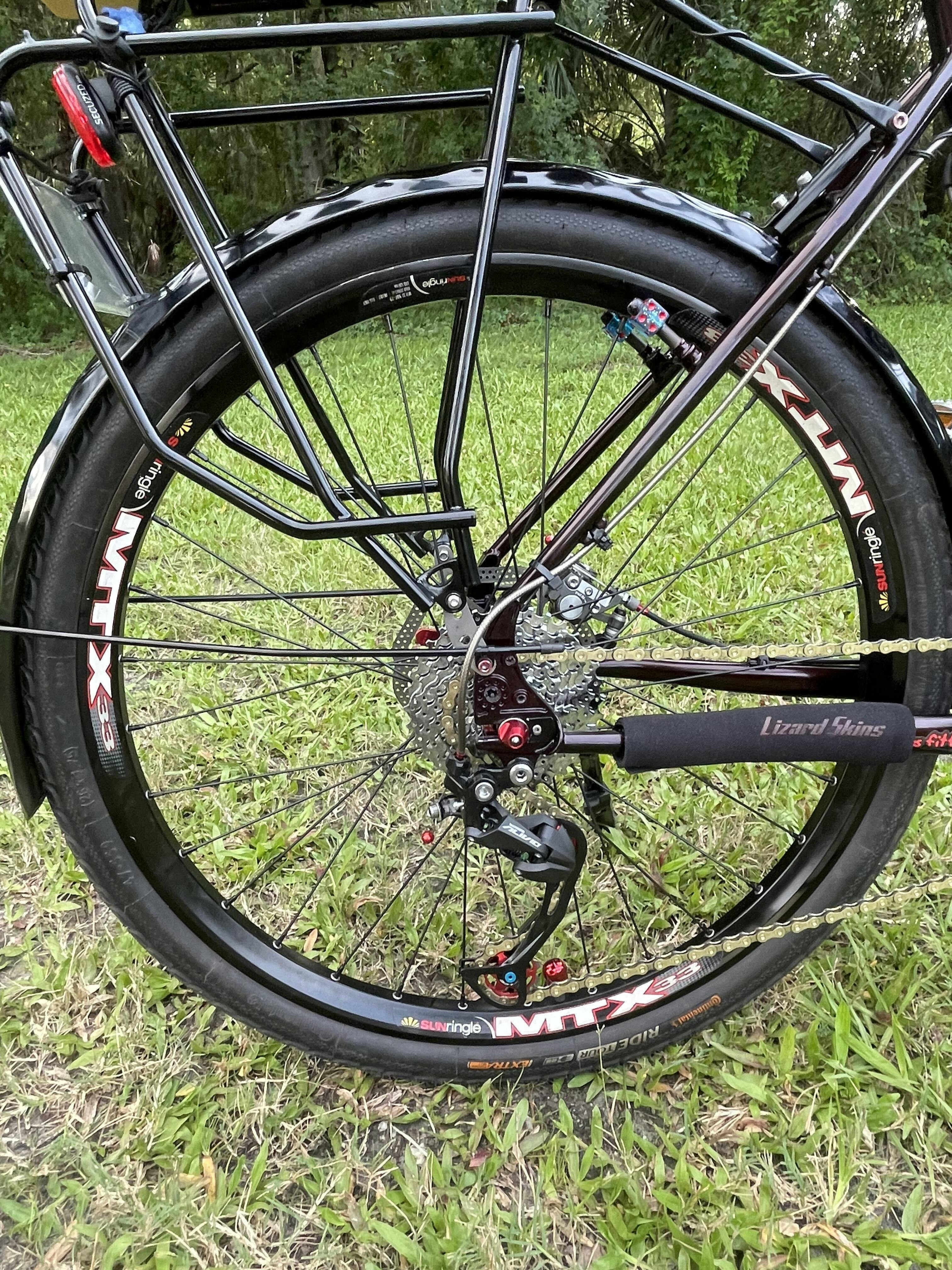 • Both come pre-drilled for stays. Front is pre-drilled for a fork crown mount