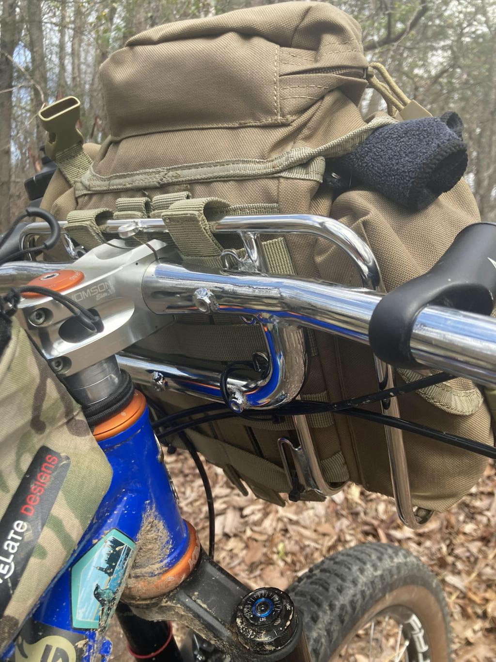 The Utility Flat Bar is one of our bases of our Utility System. With the bar's integrated mounts, you can add a Utility Rack (sold separately) to the front and your favorite bottle cages on the back. Or put bottle cages all around! You can also run a cargo-style drybag cage on the loop portion of the handlebar. Part of the fun (for us) is to see what fun and imaginative uses you can find for all of the mounting points on the bars.