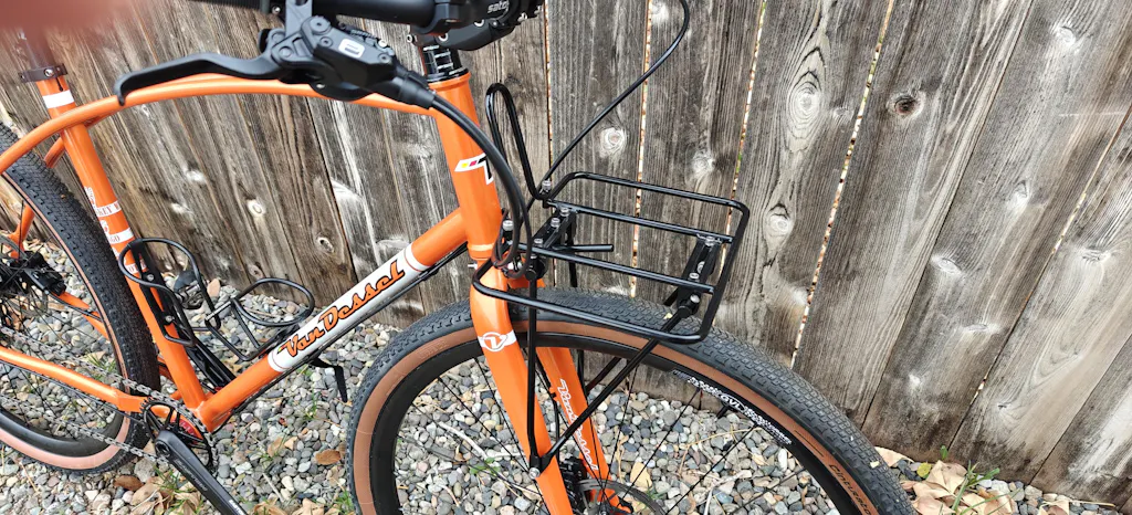 The platform is known as a “demi-porteur”. Its size is somewhere between a full Porteur and traditional Randonneur front rack. The main benefit to the demi-porteur style is better stabilization for large Randonneur Handlebar Bags as well as better support for baskets and large, bikepacking bags.