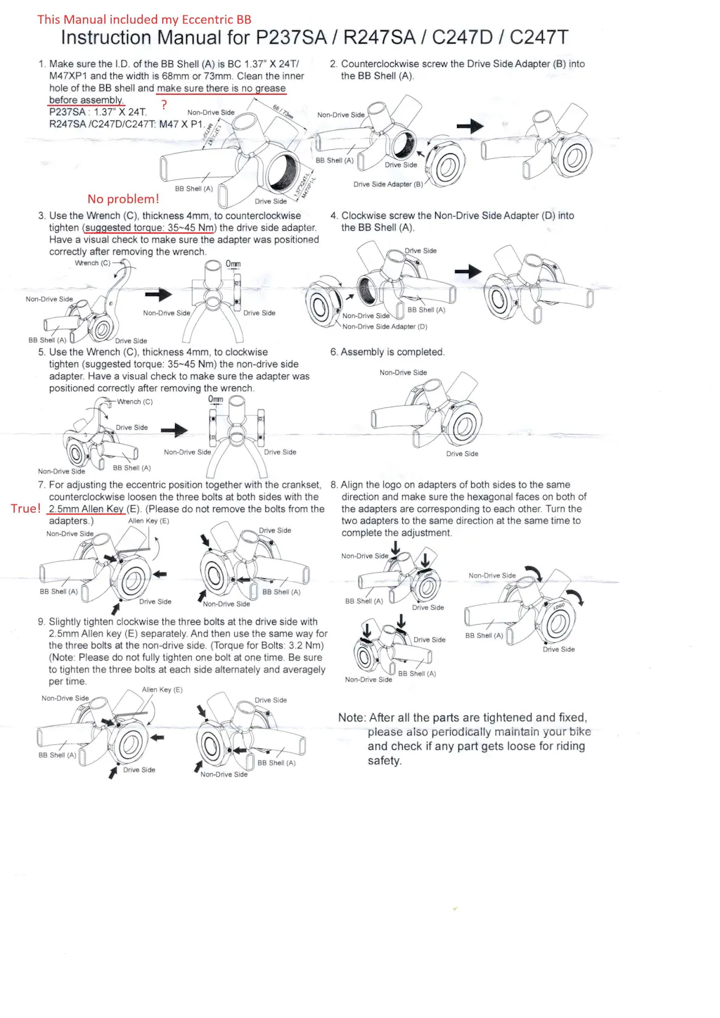 Includes spacers to dial in pre-load, a GXP shim, a wave washer for the arm spindle side, and a tool that doubles as a chain tensioner / lockring wrench.